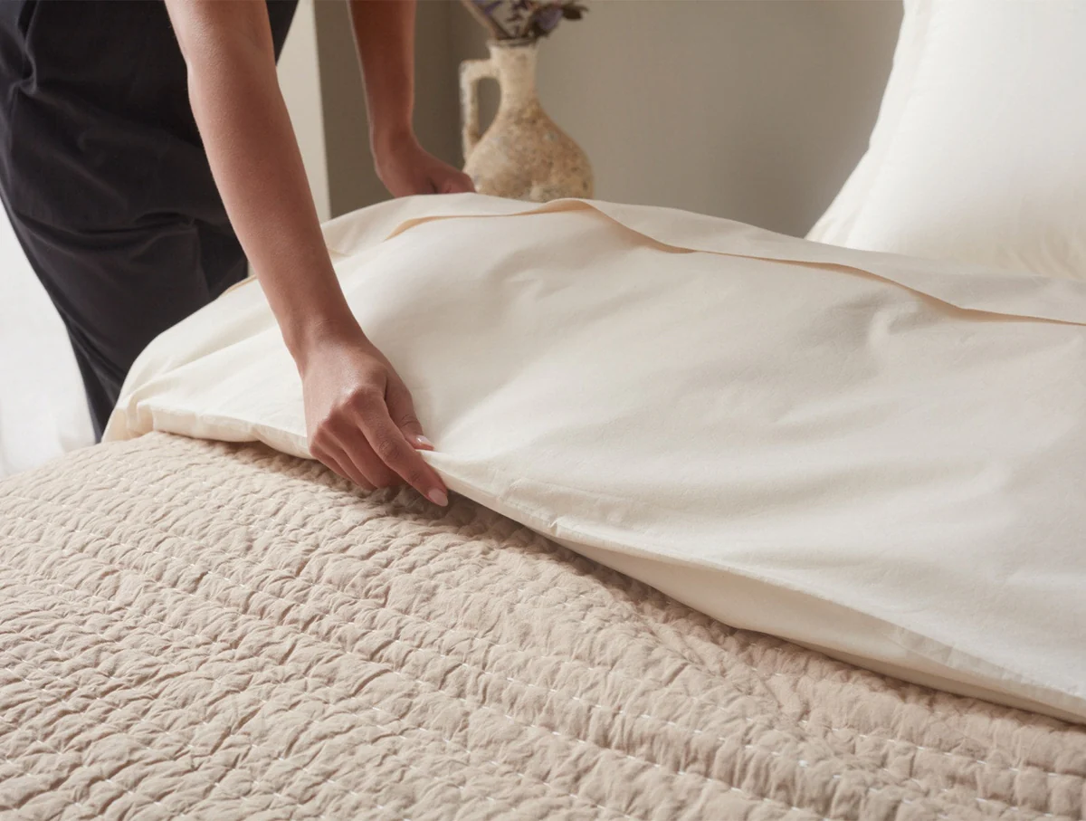 Experience the comfort and purity of our organic cotton and linen products, all of which are designed to be machine washable.