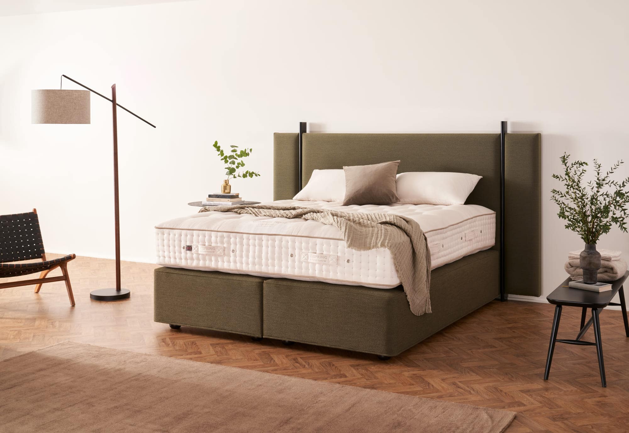 For this collection, Vispring introduces three layers of vanadium steel springs. But it’s not for show – each layer works seamlessly with the one above or below to actively support you as you sleep. It’s a sleeping system unlike anything else, creating a feeling of total weightlessness and offering an uninterrupted night’s sleep.